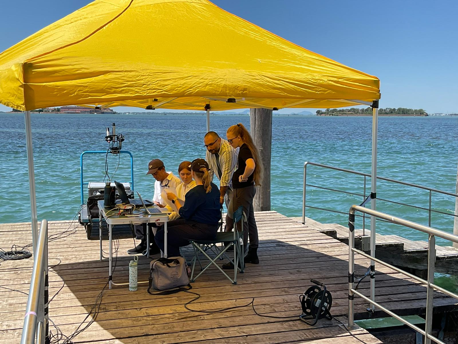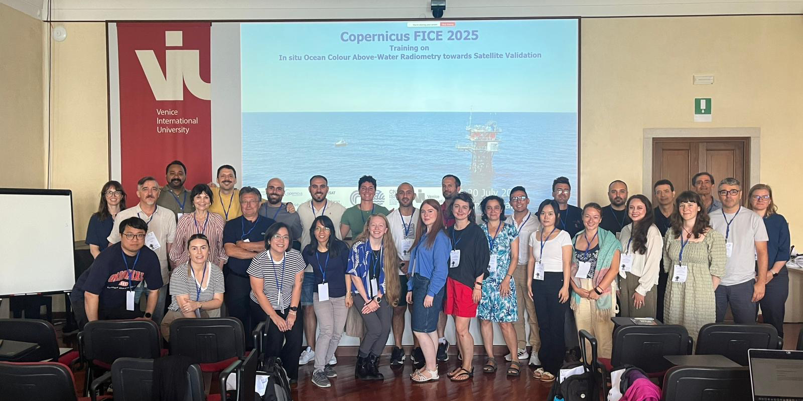 The curriculum included foundational classroom lectures on in situ radiometry principles and Fiducial Reference Measurement (FRM) standards as defined by the Committee on Earth Observation Satellites. Participants also practiced hands-on measurement exercises and field observations on San Servolo island and at the AAOT, where they witnessed expert-led intercomparison exercises while learning proper field protocols.