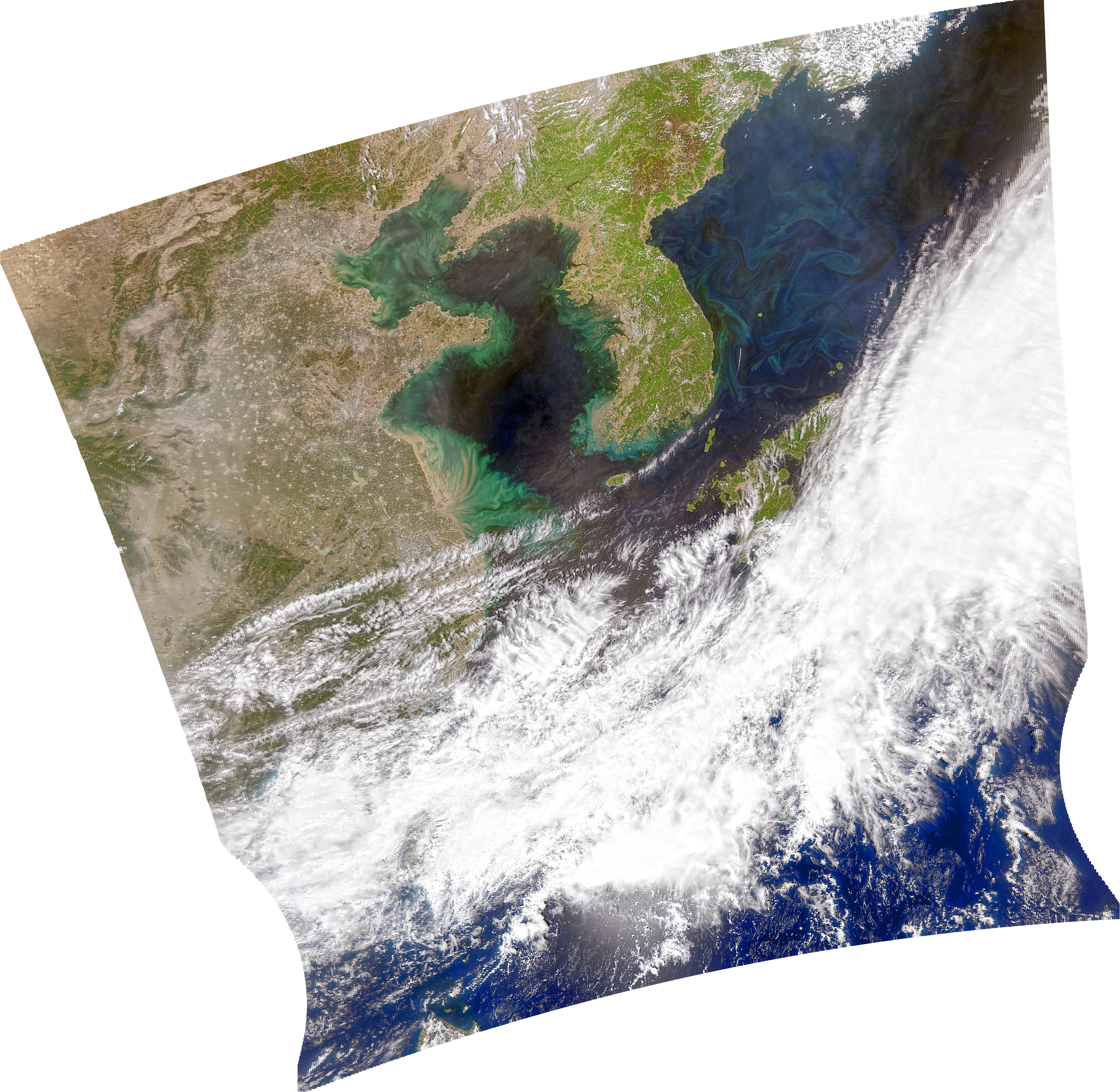 Situated between eastern China and the Korean Peninsula, the Yellow Sea is named for the golden-yellow color of the silt-ridden water discharged from major rivers. The southern part of the Yellow Sea, including the entire west coast of Korea, contains a belt of intertidal mudflats. Those flats consist of highly productive sediments with a rich benthic fauna and are of great importance for migratory waders and shorebirds. This image was taken by the Ocean Color Instrument (OCI) sensor aboard the PACE satellite on April 5, 2024.