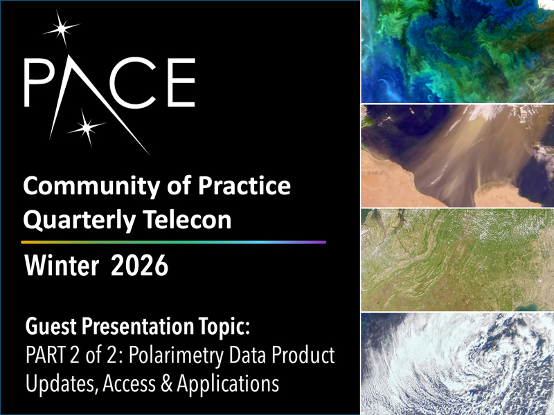 Guest Presentation Overview: The PACE mission continues to roll out novel data products that are advancing Earth System science and applications. This event is the second of two consecutive Community Telecons spotlighting several new polarimetry products that have recently become available from PACE. Chamara Rajapakshe (GSFC/SSAI) will present an overview of polarimetric cloud products from PACE then Guangliang Fu (SRON) will present on aerosol products derived from the RemoTAP algorithm. Please see our first telecon on PACE polarimetry in this series, which is archived here.
