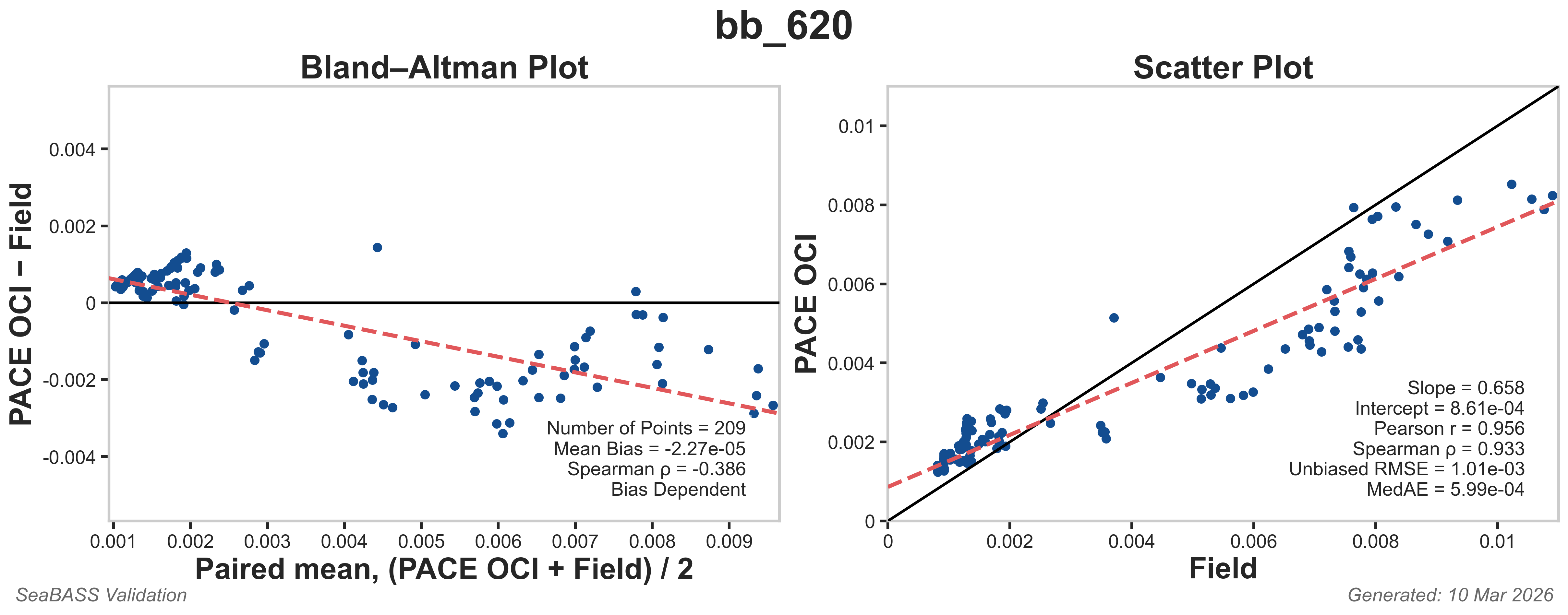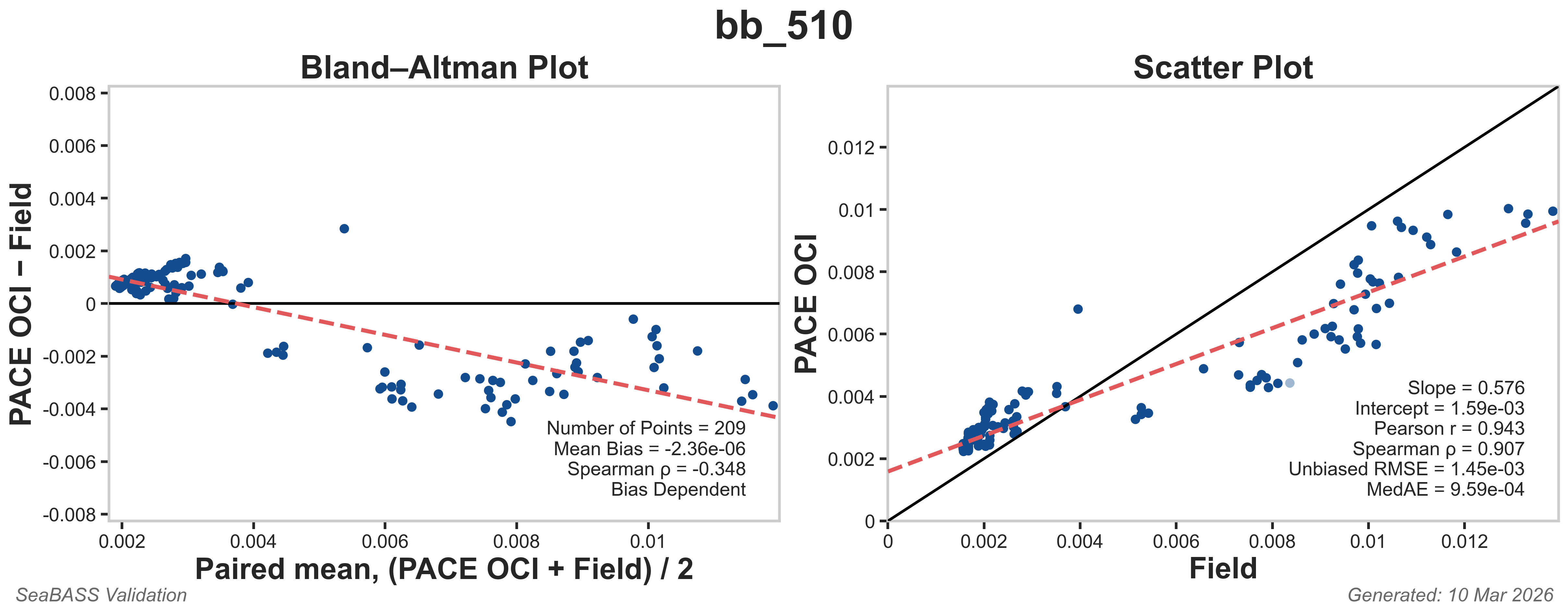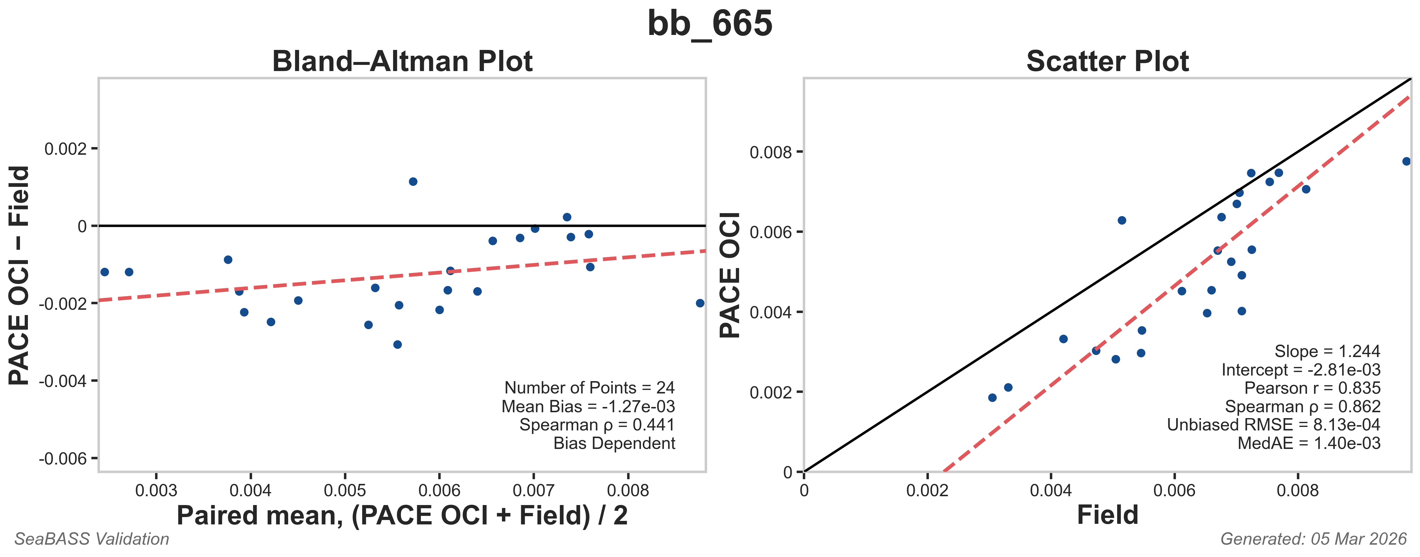 The data plotted below are Bland-Altman plots and Scatter plots for select bb matchups.