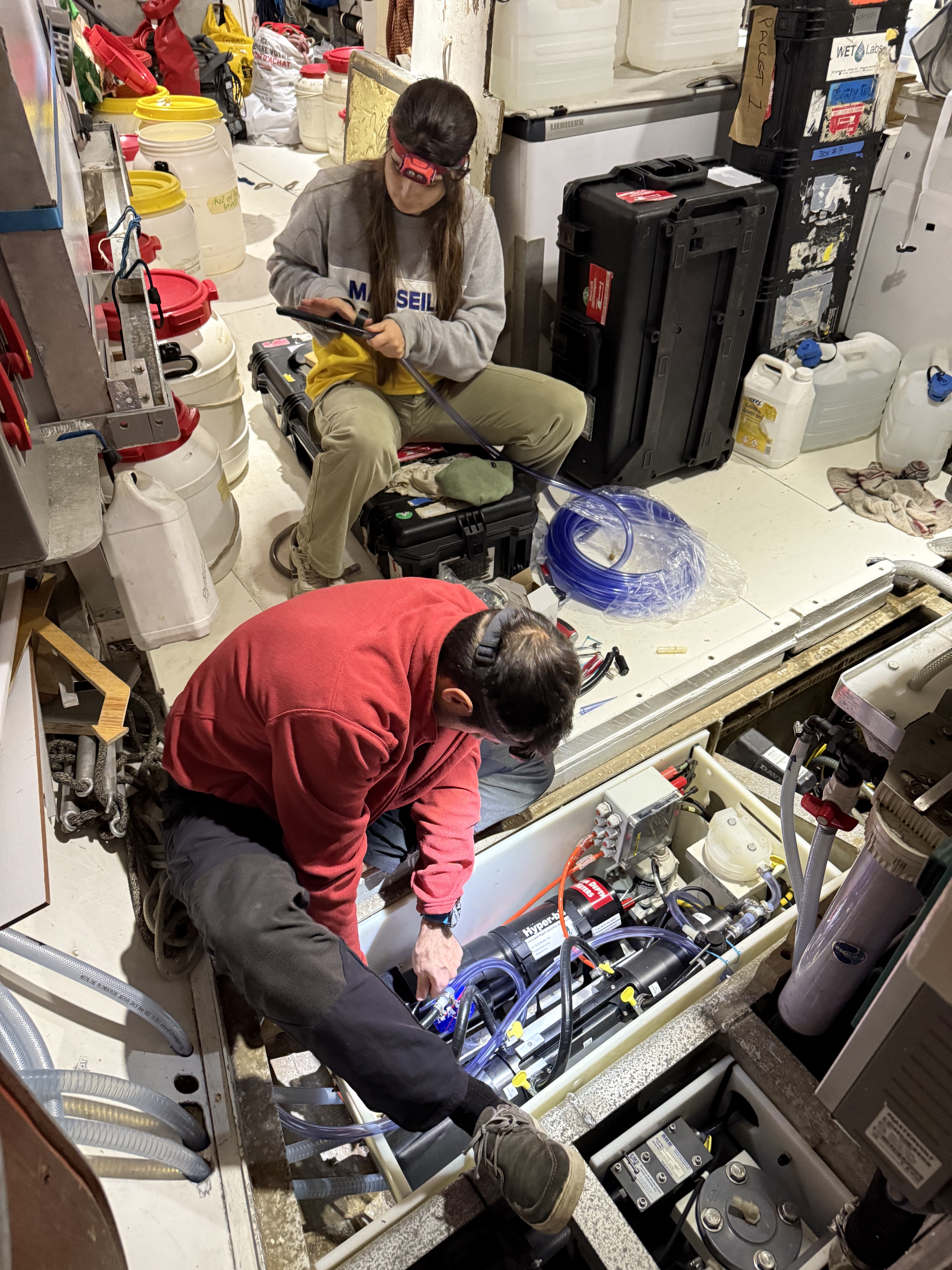 Joaquim Goes and Maria Tzortziou in the OceanXplorer’s wet lab.