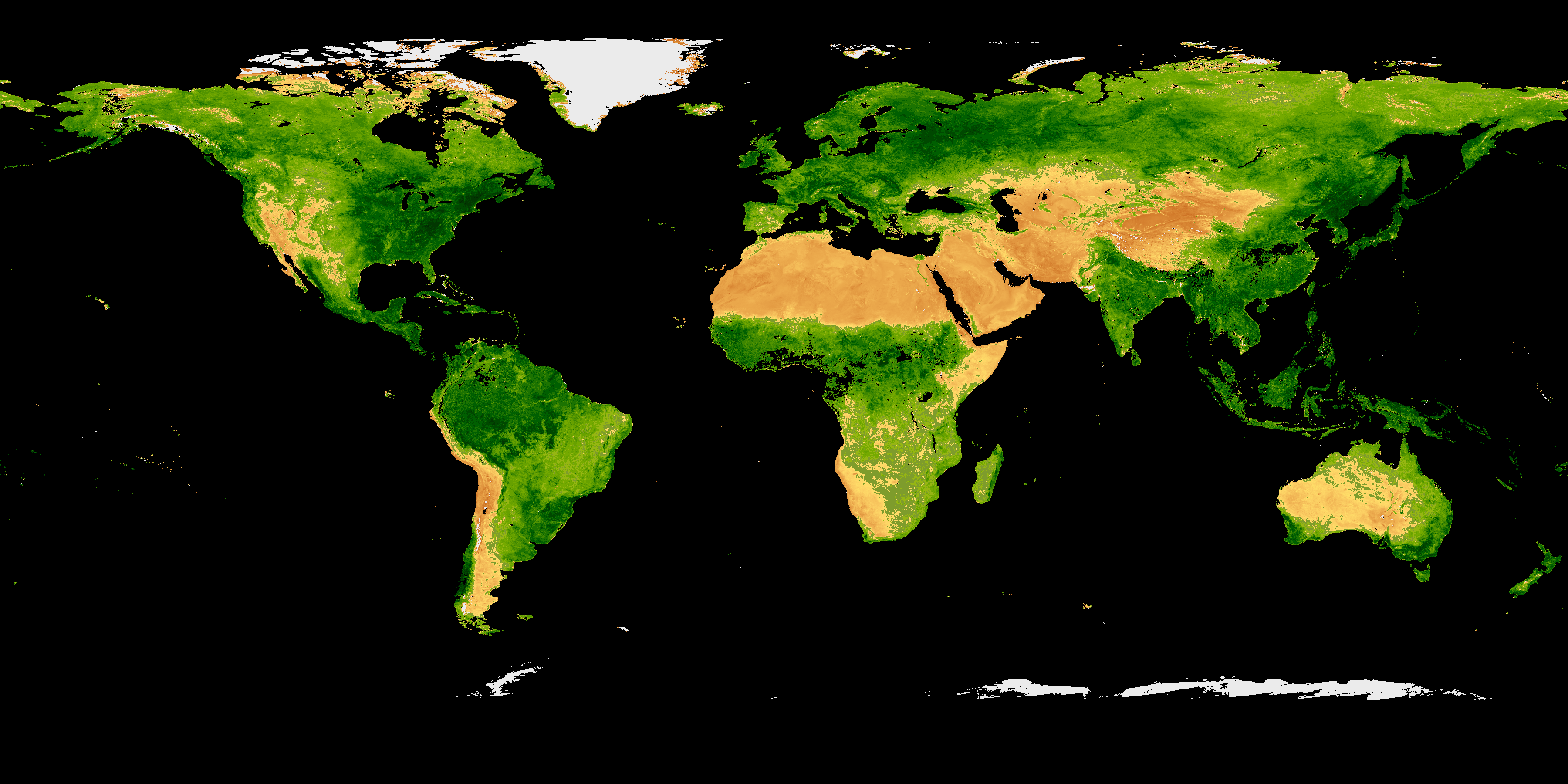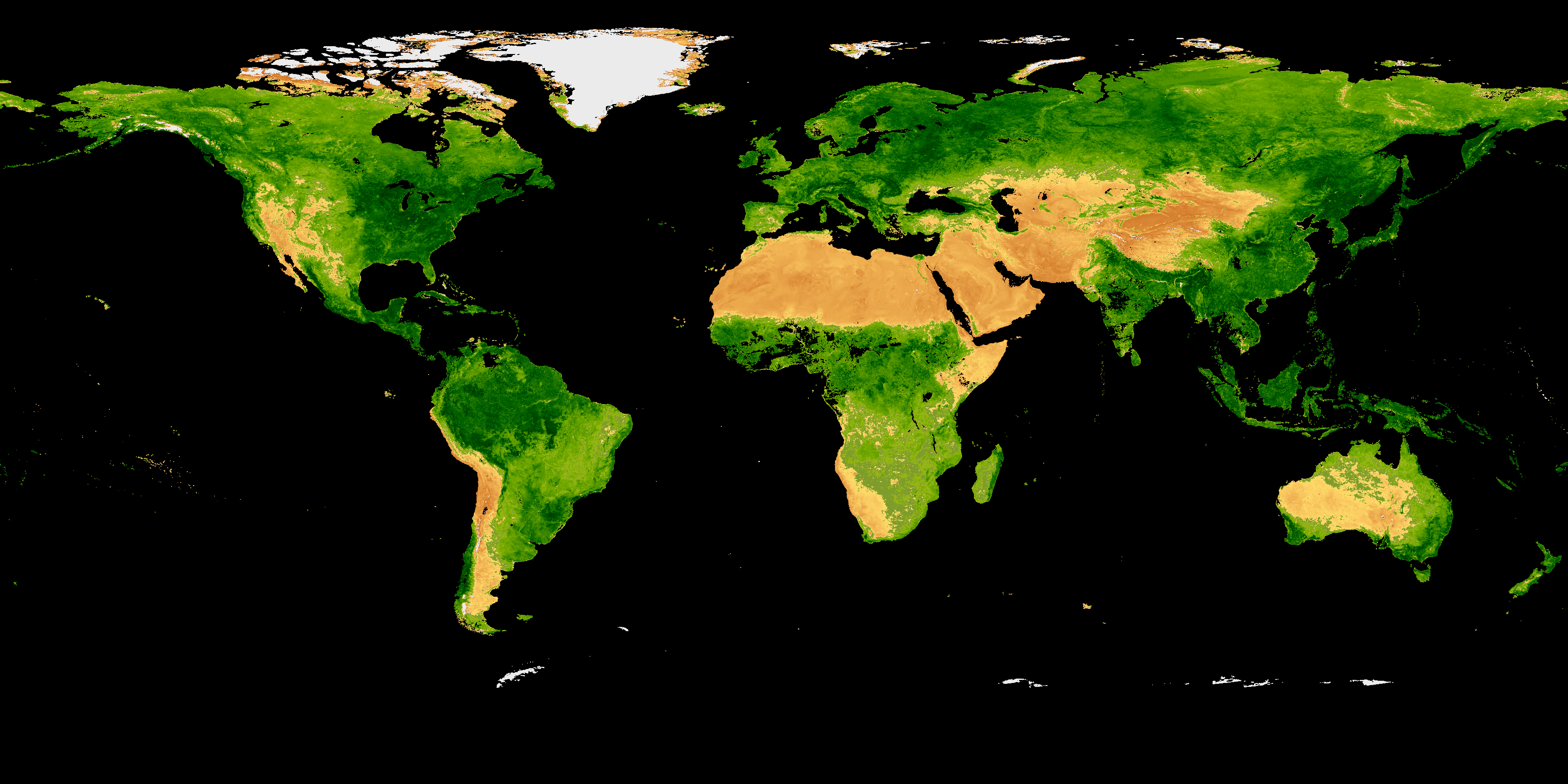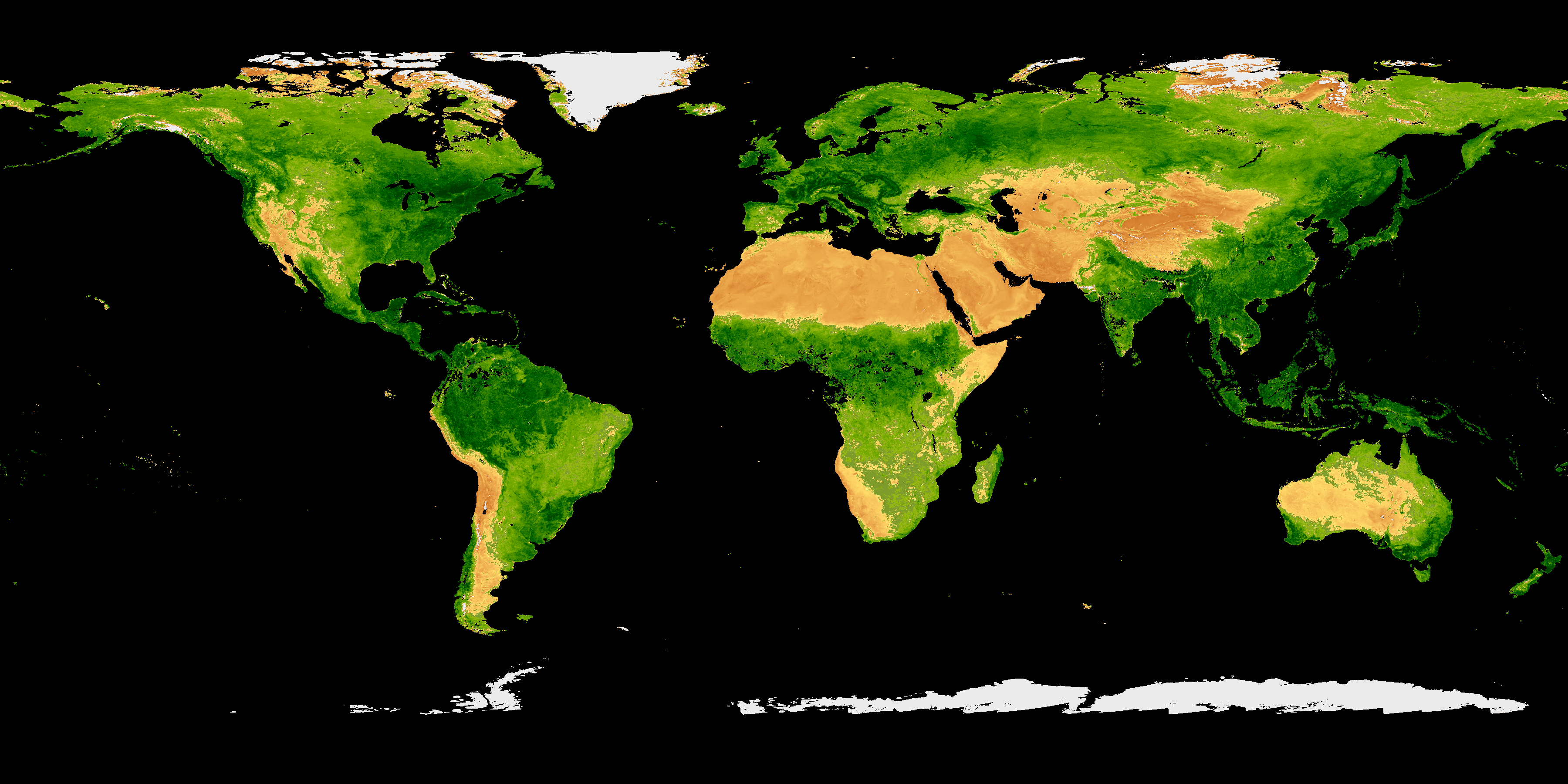 Colors in these provisional products indicate the health and abundance of vegetation on land averaged over eight days. Click on the images (below) for a closer view. From there, you can click the left/right arrows to move between maps.
