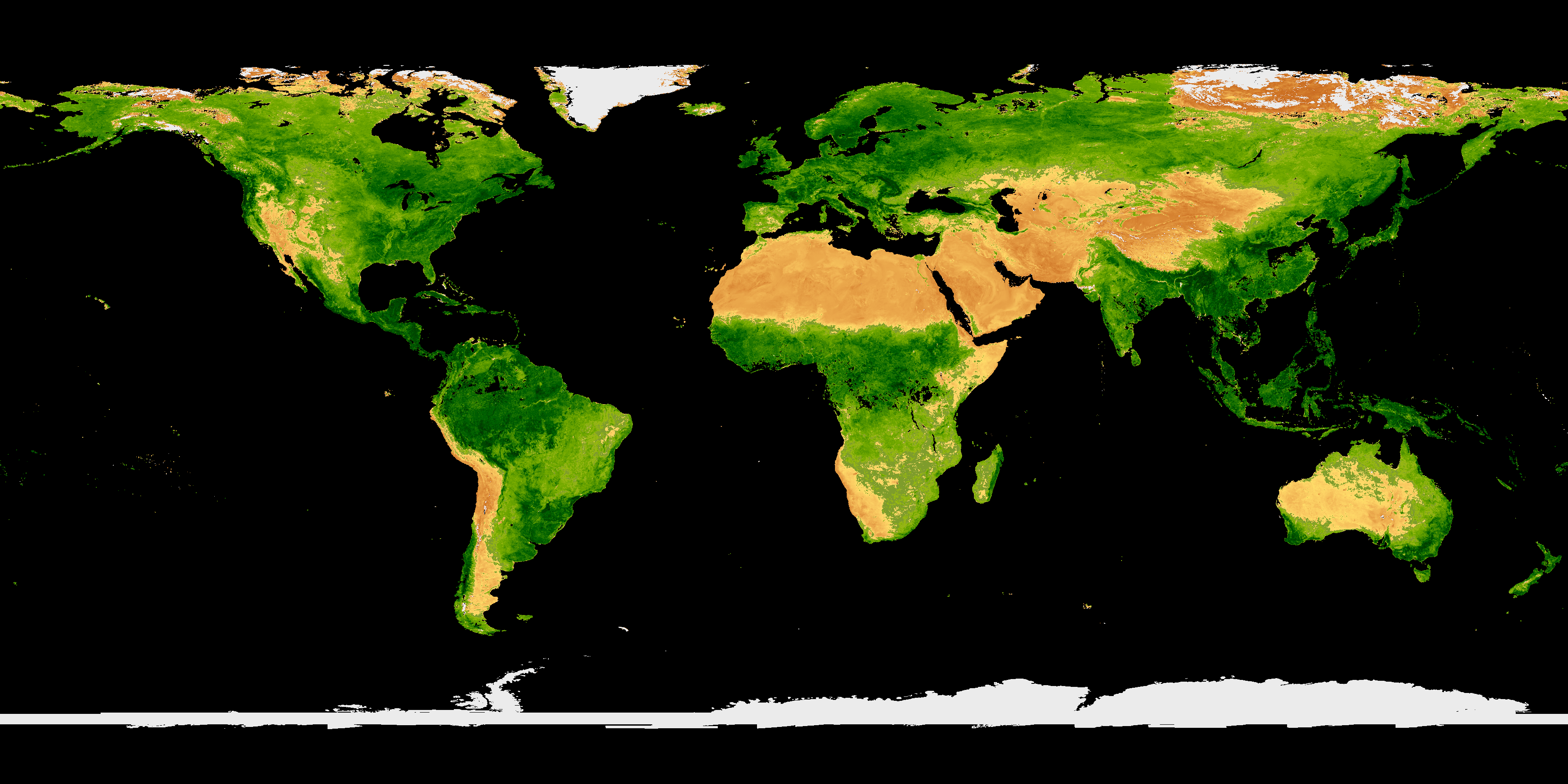 PACE Land Vegetation Indices tell us about the “greenness” or photosynthetic activity of plants on land. Healthy plants – with abundant chlorophyll and cell structures – appear as green colors. Areas with sparse or unhealthy vegetation appear brown. Ice or snow-covered areas appear white. These provisional PACE-OCI maps are available from the Ocean Biology Distributed Active Archive Center (OB.DAAC).